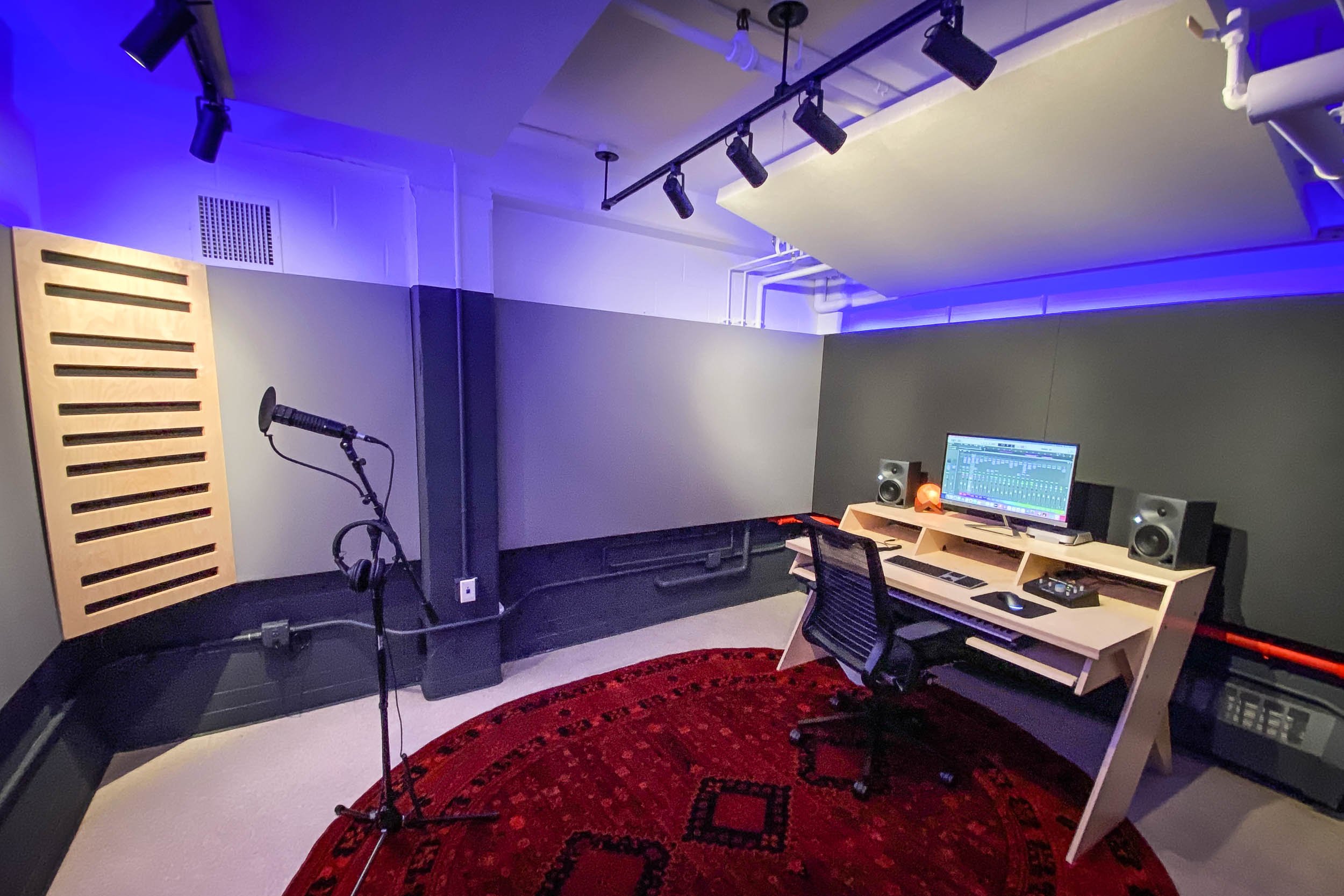 Wondersmith Audio provided the acoustic design of the room, interior design guidance, renovation including acoustic treatment and lighting updates, as well as all furniture, hardware, software, and installation. The project began with a teen focus group session and concluded with training for MCHYC users. The room’s appearance changed dramatically, and now features custom acoustic wall and ceiling treatments, a Logic Pro and Ableton centered production workstation, Neumann monitoring, and SSL audio interface.