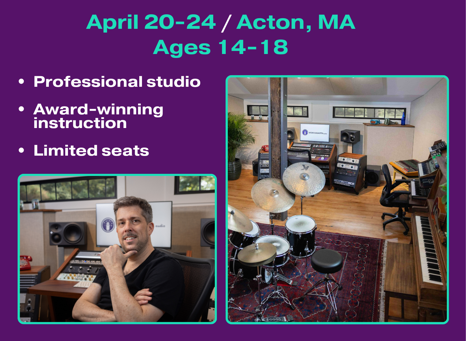 Teens ages 14–18 who are curious about recording, production, and how studio sessions work. Instruction will be differentiated to accommodate all learning styles and backgrounds. No prior experience necessary.